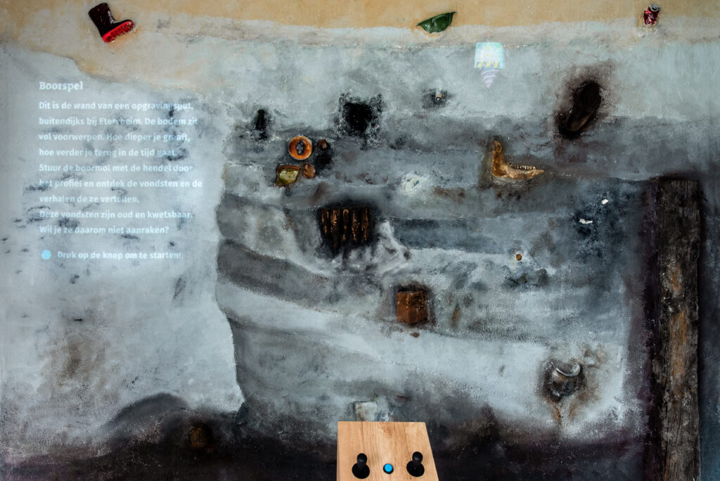 Laag voor laag ontdek je hoe de bodem zich heeft opgebouwd en welke sporen van het verleden daarin verborgen liggen. Terwijl je boort, verschijnen er informatie bij objecten die ooit in de grond zijn gevonden, van alledaagse gebruiksvoorwerpen tot bijzondere archeologische schatten.
